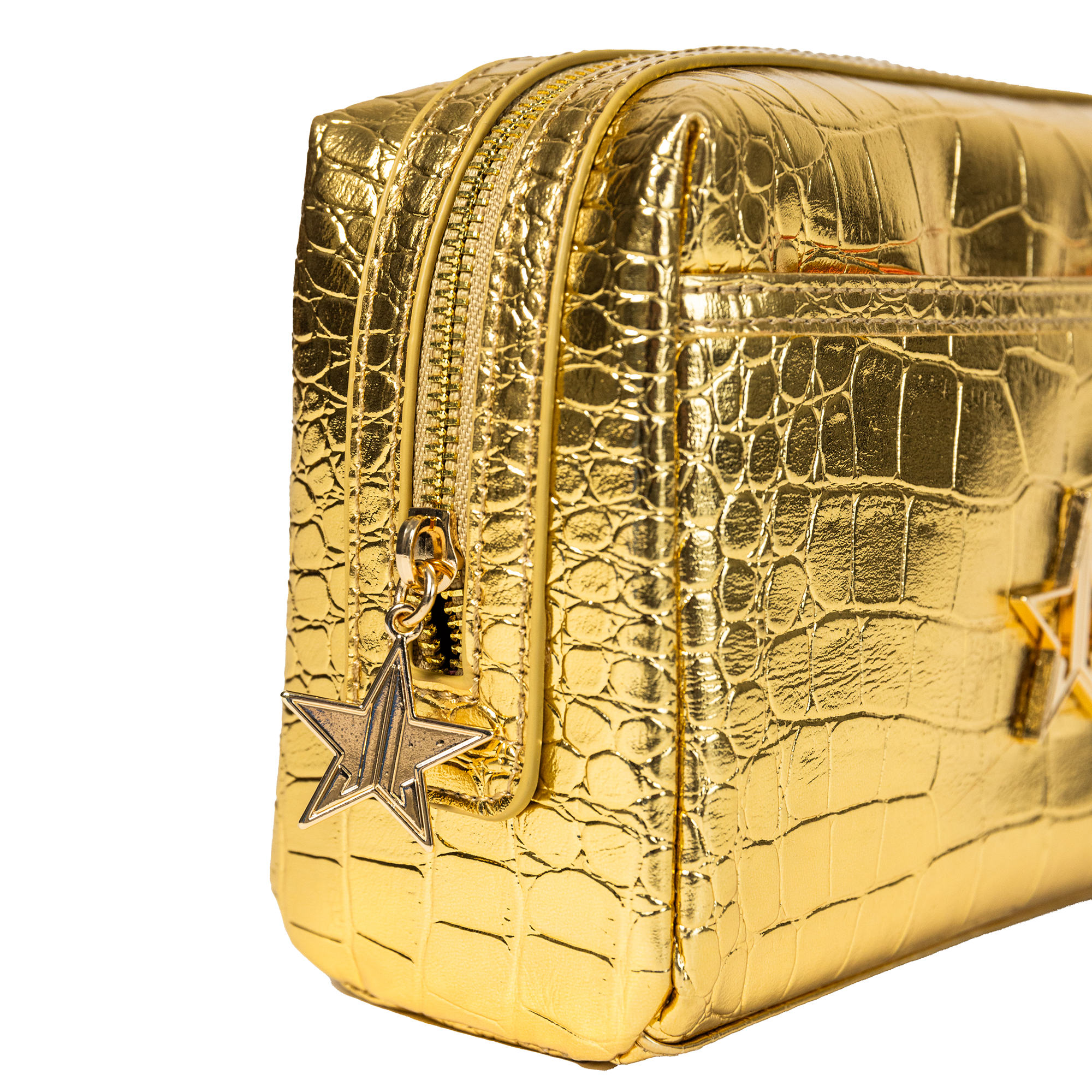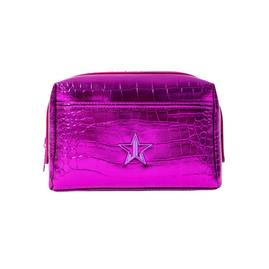 Unleash your inner diva with this faux alligator Makeup Bag. The metallic finish adds a touch of glam to your makeup routine. while the spacious design is perfect for all your beauty essentials. This bag is perfect for any diva on the go!