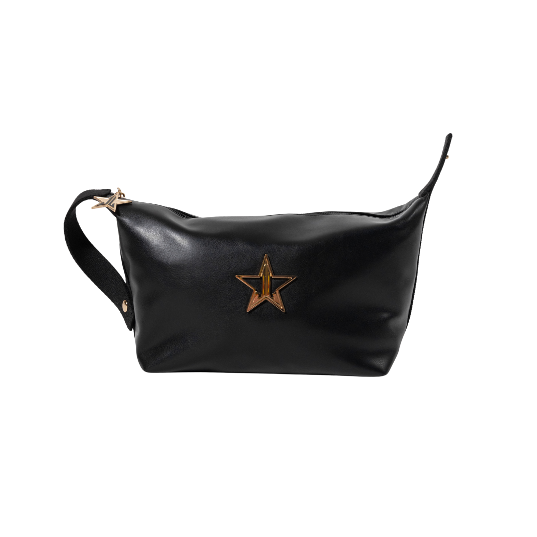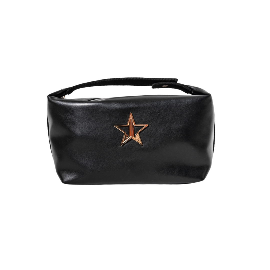 Elevate your beauty storage with our ultra-chic Faux Leather Snap Clip Bag.?