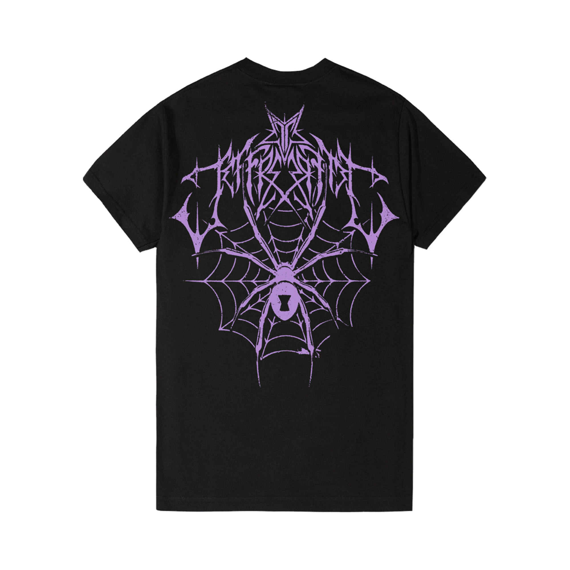 This UNISEX screen-printed tee is on a cotton tee and printed in America. It is Black with a custom Spider Web design emblazoned in purple. They are also tag-less for your ultimate?comfort! Sizing runs a standard US unisex measurement.?