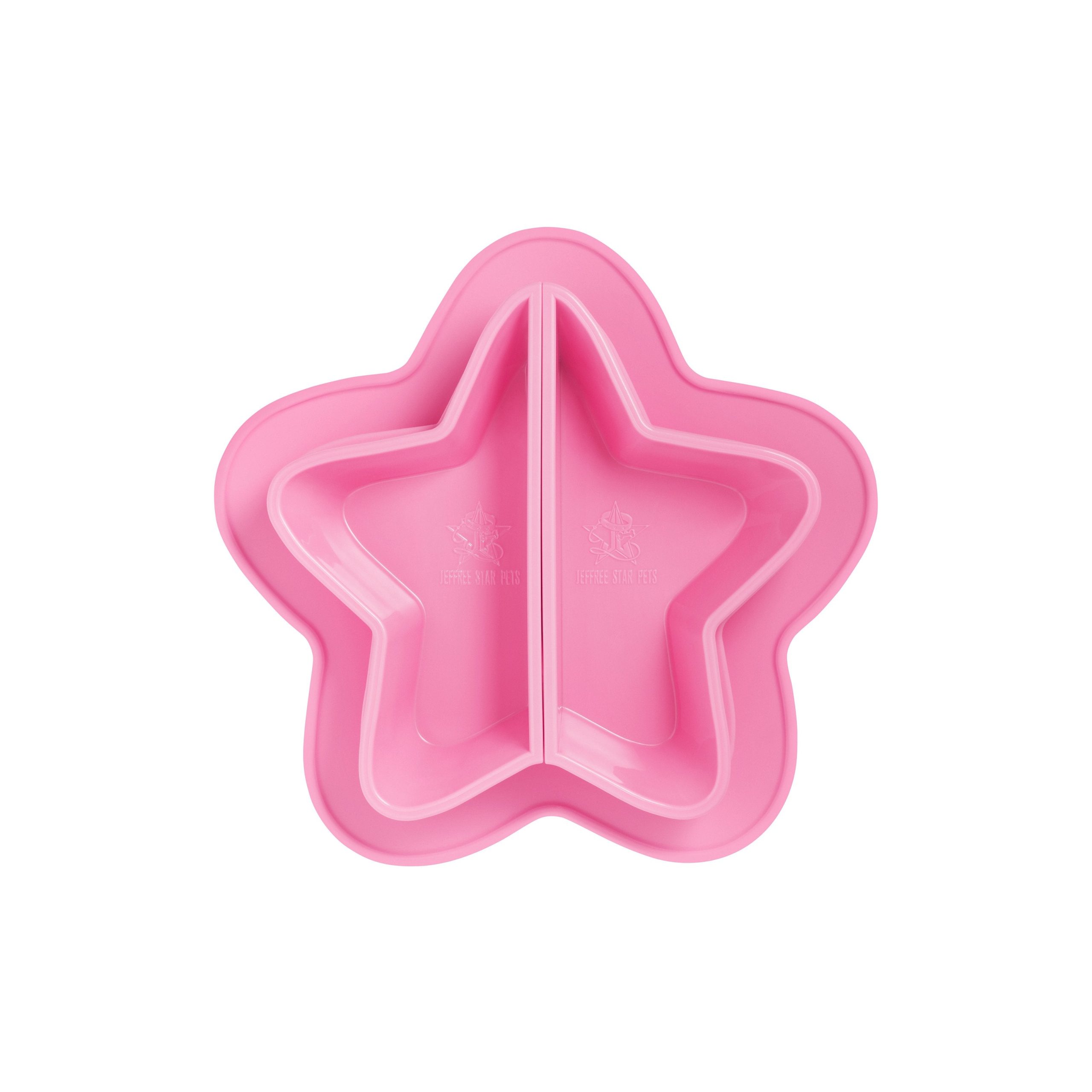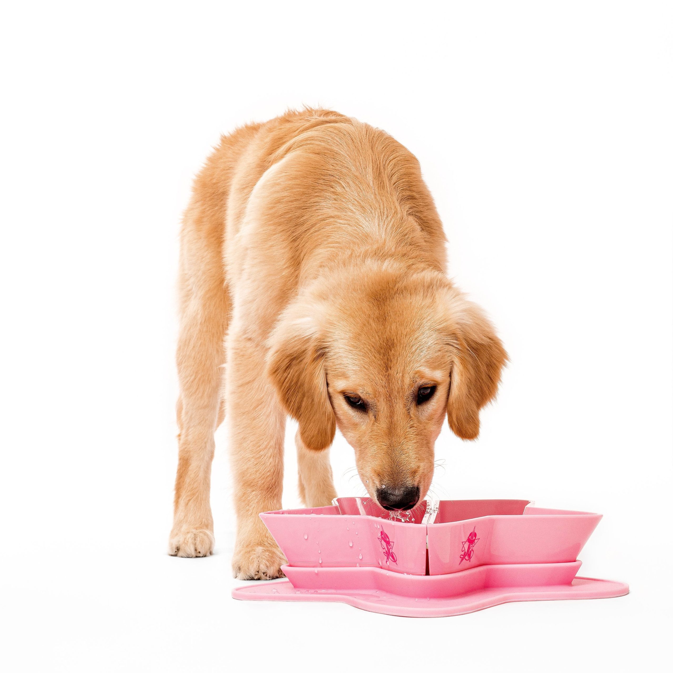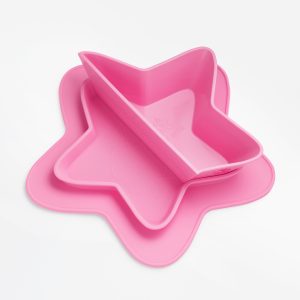 Star-shaped bowl with a silicone mat. This silicone mat features a star-shaped built-in spot for the accompanying plastic bowls to sit comfortably in. holding food and water in place. Rounded corners for comfortably eating and easy cleaning.